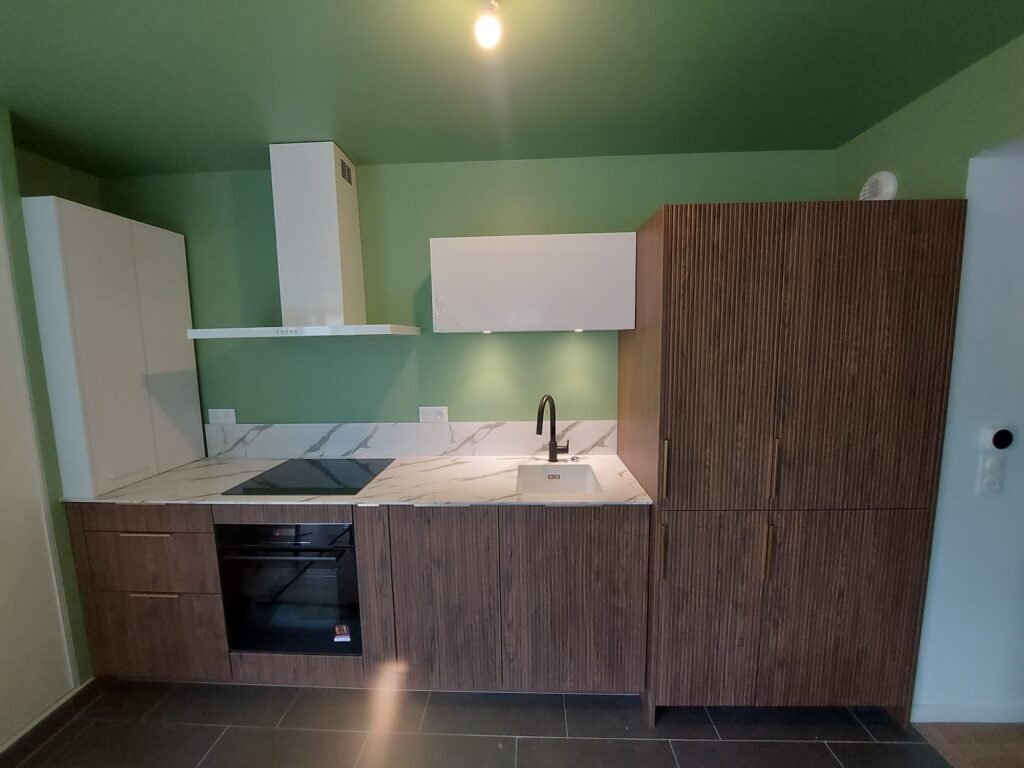 Renovenza a accompagné cette phase en validant les solutions techniques : adaptation des réseaux de plomberie et d’électricité, intégration des équipements encastrés, gestion des hauteurs sous plafond et respect des contraintes structurelles du logement.